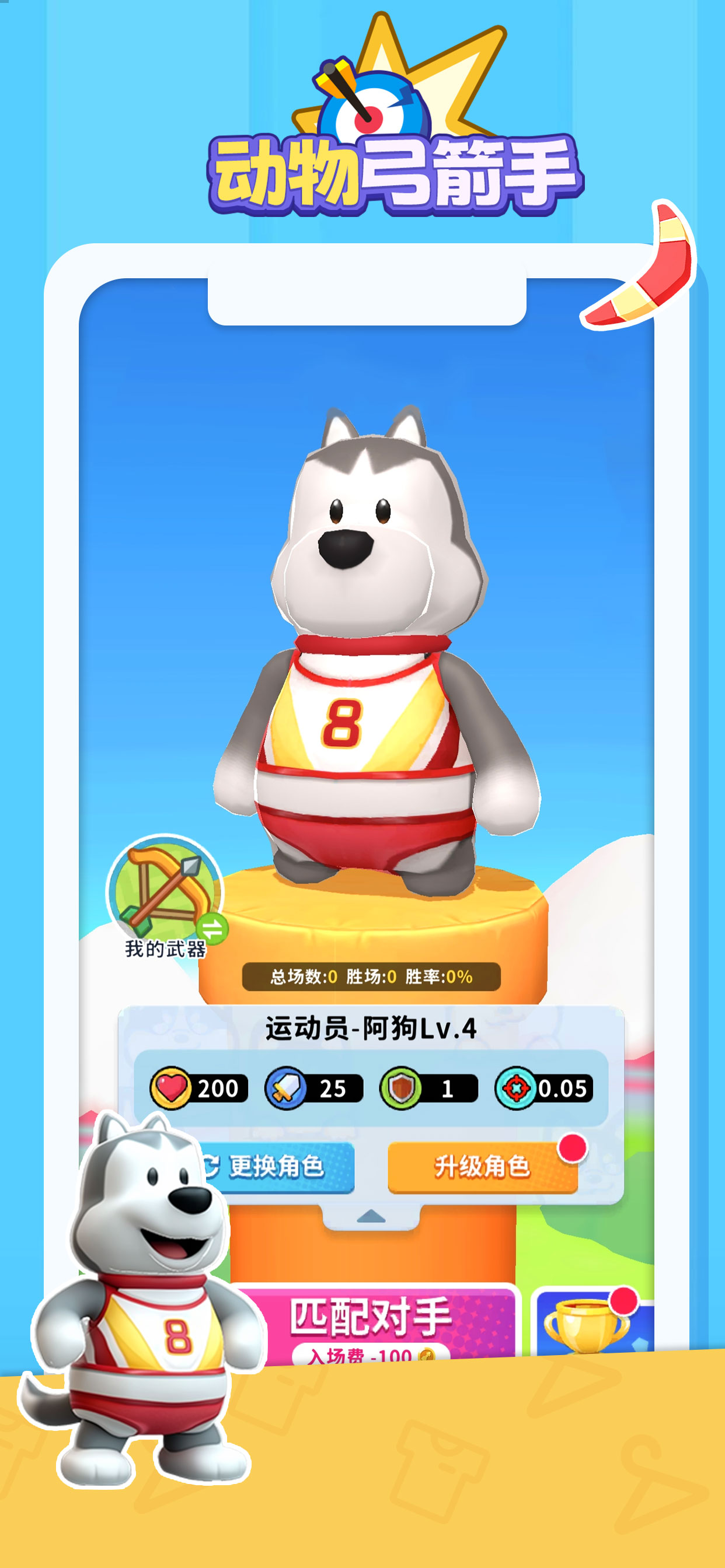 《动物弓箭手》是一款全立体的策略对战射击游戏。 你将化身为技艺精湛的小动物射手,参与各地的比赛邀约。每次开启对战,可能匹配到不同的场景、对手和武器等级。面对有限资源,得尽可能找准对手的攻击弱点。 滑动手指控制武器的轨迹和角度,每一次微调都可能改变战局走向。让武器稳稳击中对手,看着对方的生命值慢慢减少,这离不开你细致的操作和判断。 回合结束前,若能让对手的生命值归为零,即可赢得胜利;若我方生命值清零,则输掉比赛。 【丰富对战场景&多种环境地势】 这里有丰富又刺激的海滨码头、体育场、山地丘陵、森林地带等户外射击场景,邀你探寻多样复杂的地势与移动限制。 【召集自己的特长小选手】 每一只可爱的小动物都拥有独特的技能和属性,等待着你的挖掘与培养。 【脑洞武器装备】 锻造升级趁手的武器装备,在攻防转换的节奏里,尽可感受不同战术的乐趣。